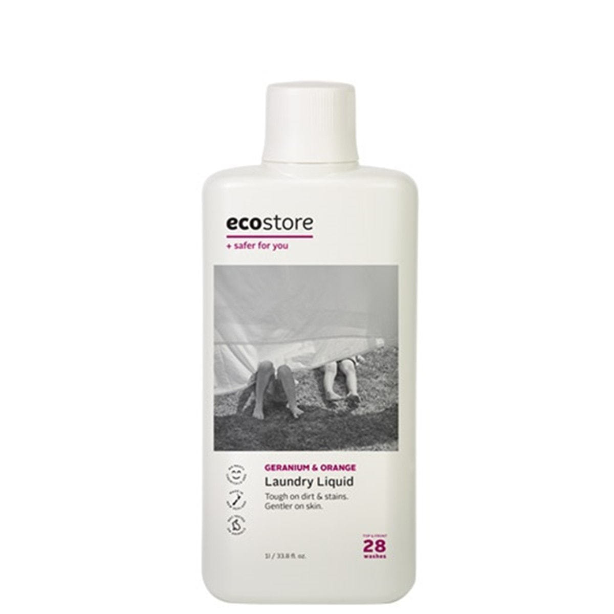 エコストア ランドリーリキッドは衣類に優しいのはもちろん、汚れ落ちもスッキリで毎日のお洗濯がストレスフリーに。